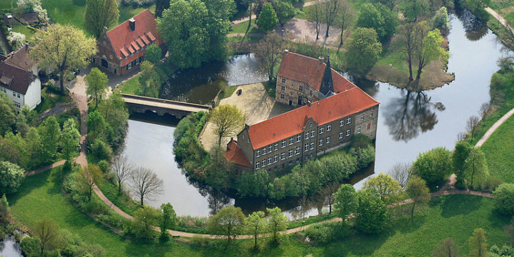 Schloss Hülshoff is een typisch Westfaalse waterburcht, die al in de 11e eeuw in documenten wordt vermeld als Oberhof ,,Zum Hülshof”. In 1417 verwierven de voorouders van de dichter de ridderzetel. Het landhuis werd onder Heinrich I von Droste zu Hülshoff tussen 1540 en 1545 gebouwd en is vandaag het oudste deel van het kasteel.